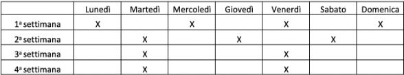 Tabella di frequenza d’uso consigliata per il trattamento intensivo.